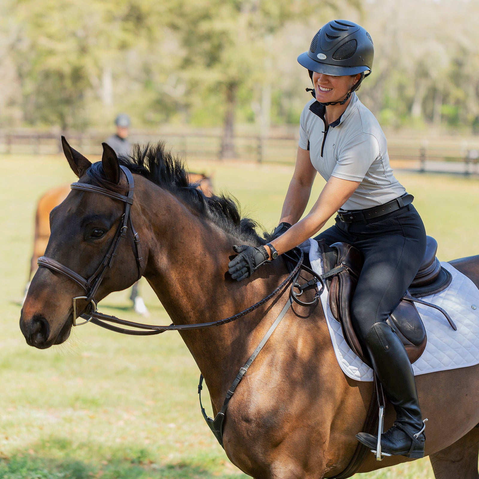 - Mid-rise fit, wider waistband, slightly higher in the back for in-saddle comfort, and silicone grip inside to keep shirt neatly tucked in