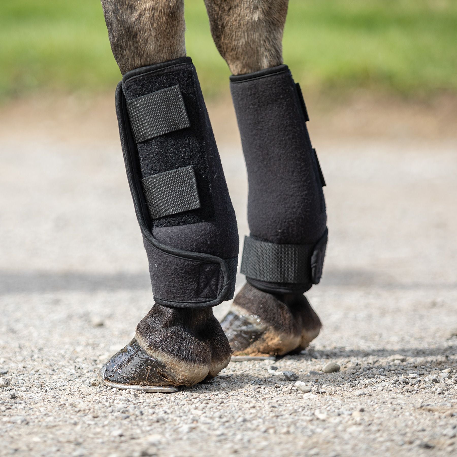 - Lower strap wraps around fetlock for complete protection