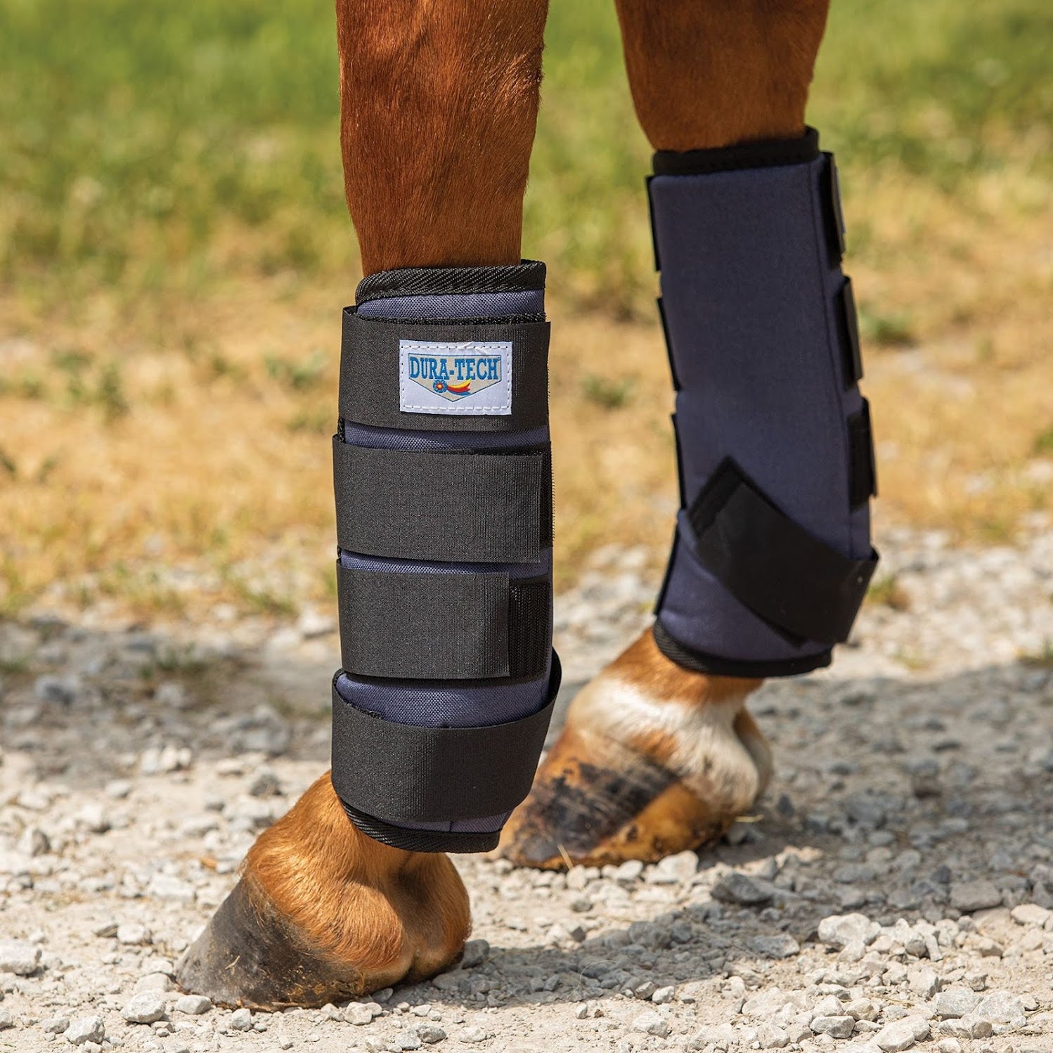 Dura-Tech Magnetic Shin and Tendon Wraps are ideal for horses with bowed tendons, occelets, splints, bucked shins and suspensory ligament injuries. Magnetic therapy has proven effective to speed healing by increasing blood flow, reducing inflammation and easing soreness.Dura-Tech Magnetic Shin and Tendon Wraps are recommended to be used in short intervals at the onset of treatment. Start with 15-20 minutes treatments and gradually increase time to achieve desired results.Dura-Tech Magnetic Shin and Tendon Wraps contain 6 unipolar magnets in each wrap. The unipolar magnets measure 1100 GAUSS which is low to medium penetration. The outer cover of the wrap is made of durable 1000 denier polyester with a soft poly fleece for the inner lining. In between is foam padding for maximum comfort. The wraps are one size fits all and fasten securely with 4 heavy duty hook and loop straps.