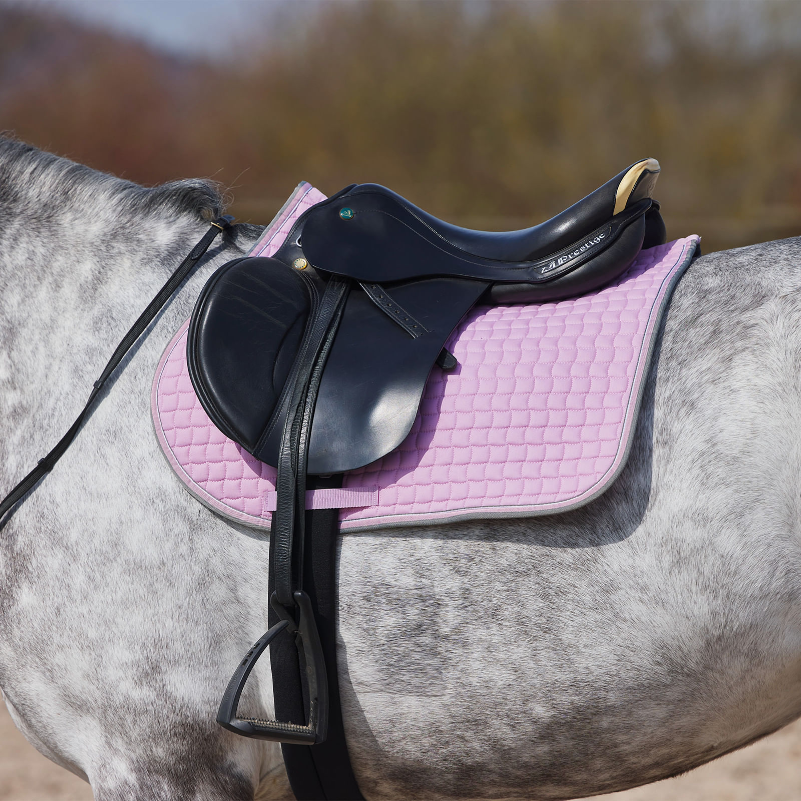 - Two-Toned Trim - Soft, eye-catching webbed trim and a small Horze logo embroidery at the withers gives this saddle pad a clean look.