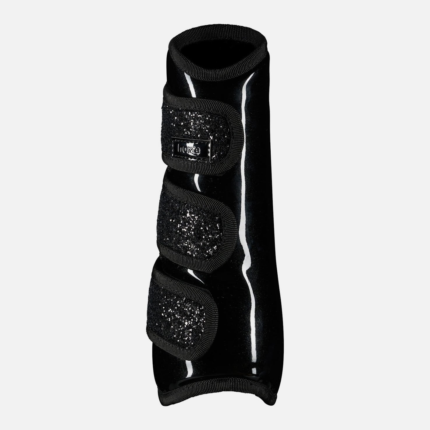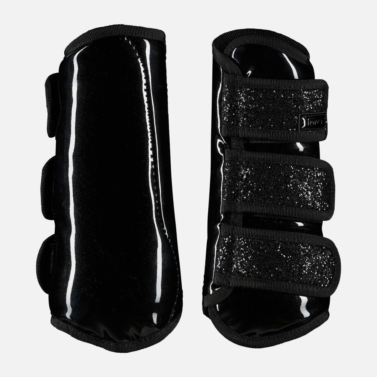These new brushing boots protect your horse's legs in the most stylish way. The durable outer material is long-lasting and protective, and the lining is made from breathable mesh material. Strong hook-and-loop fasteners keep the boots in place. They are coated in glitter material for a sparkly look.