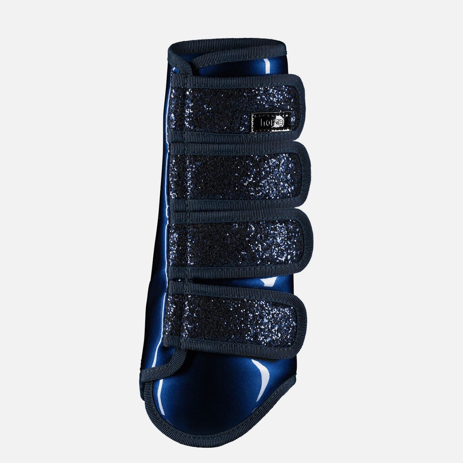 These new brushing boots protect your horse's legs in the most stylish way. The durable outer material is long-lasting and protective, and the lining is made from breathable mesh material. Strong hook-and-loop fasteners keep the boots in place. They are coated in glitter material for a sparkly look.