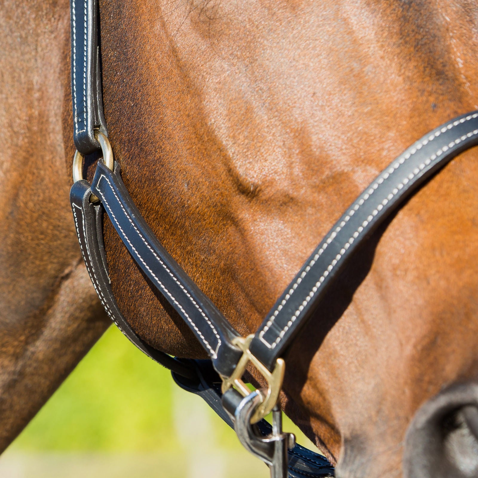 - Attractive for Any Breed - Brass hardware and decorative contrast-stitching give this halter a classy touch that will look great on your horse! The thinner 0.8" width accentuates the features of your horse, no matter the breed.
