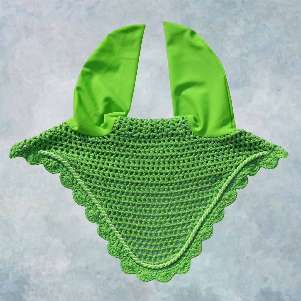 A crochet bonnet with lycra stretch ears. Available in a variety of colors and three sizes.