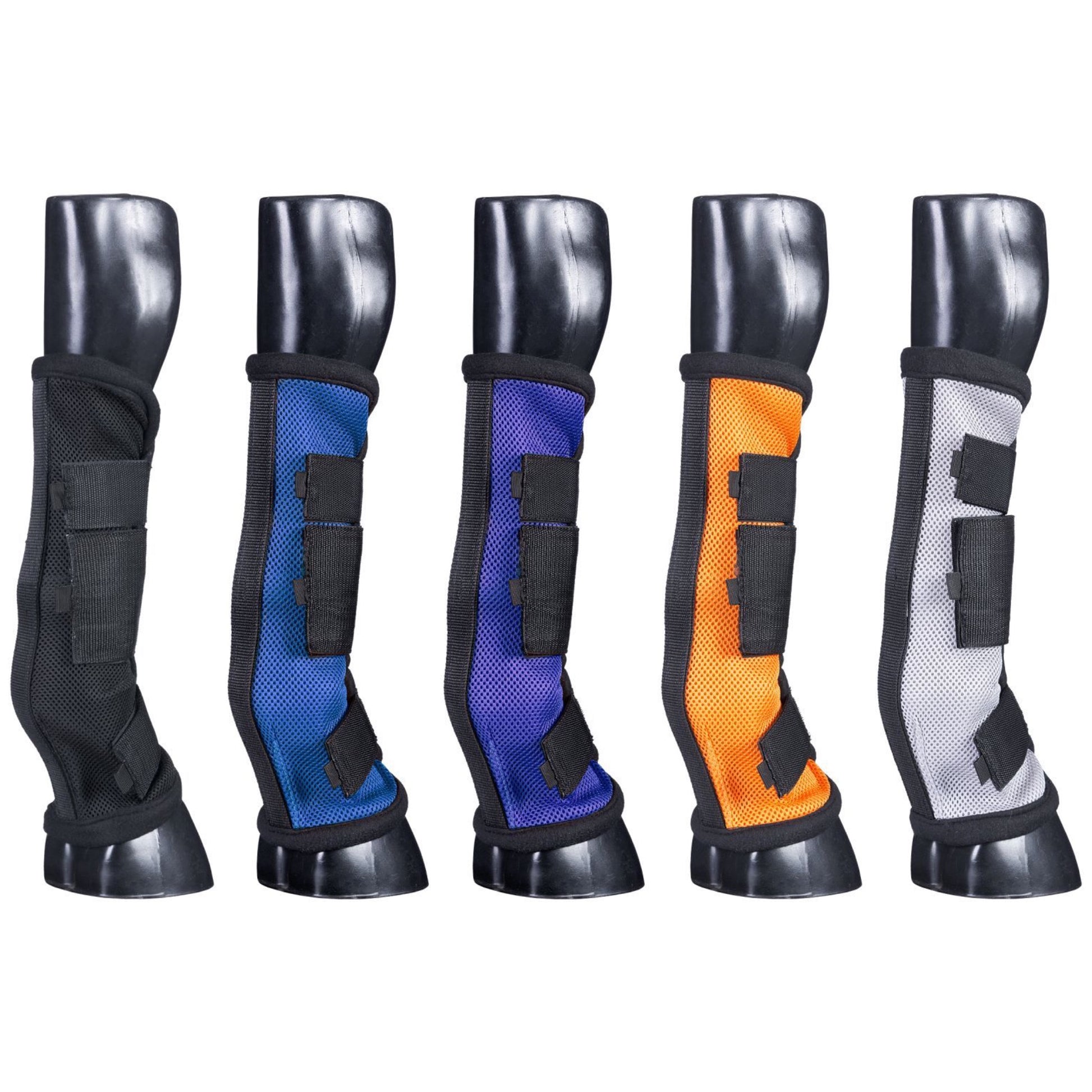 Quit the stomping with these durable mesh fly boots that protect your horse’s legs from biting insects. These boots are made from soft, fine mesh with fleece trim to prevent rubbing. Each boot features a flexible spine and a neoprene roll to help the boot stay upright. Large “Quick Grip” closures for easy on/off. Sold as a set of four.